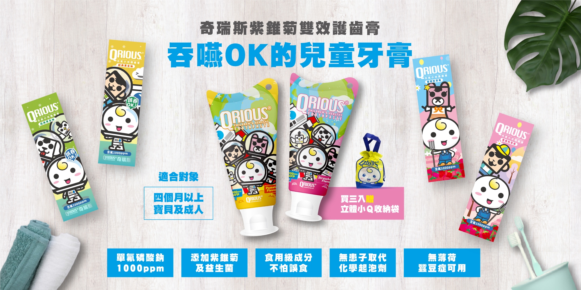 QRIOUS奇瑞斯元氣小兒護齒膏-蜜蜜粉草莓(60g/條)